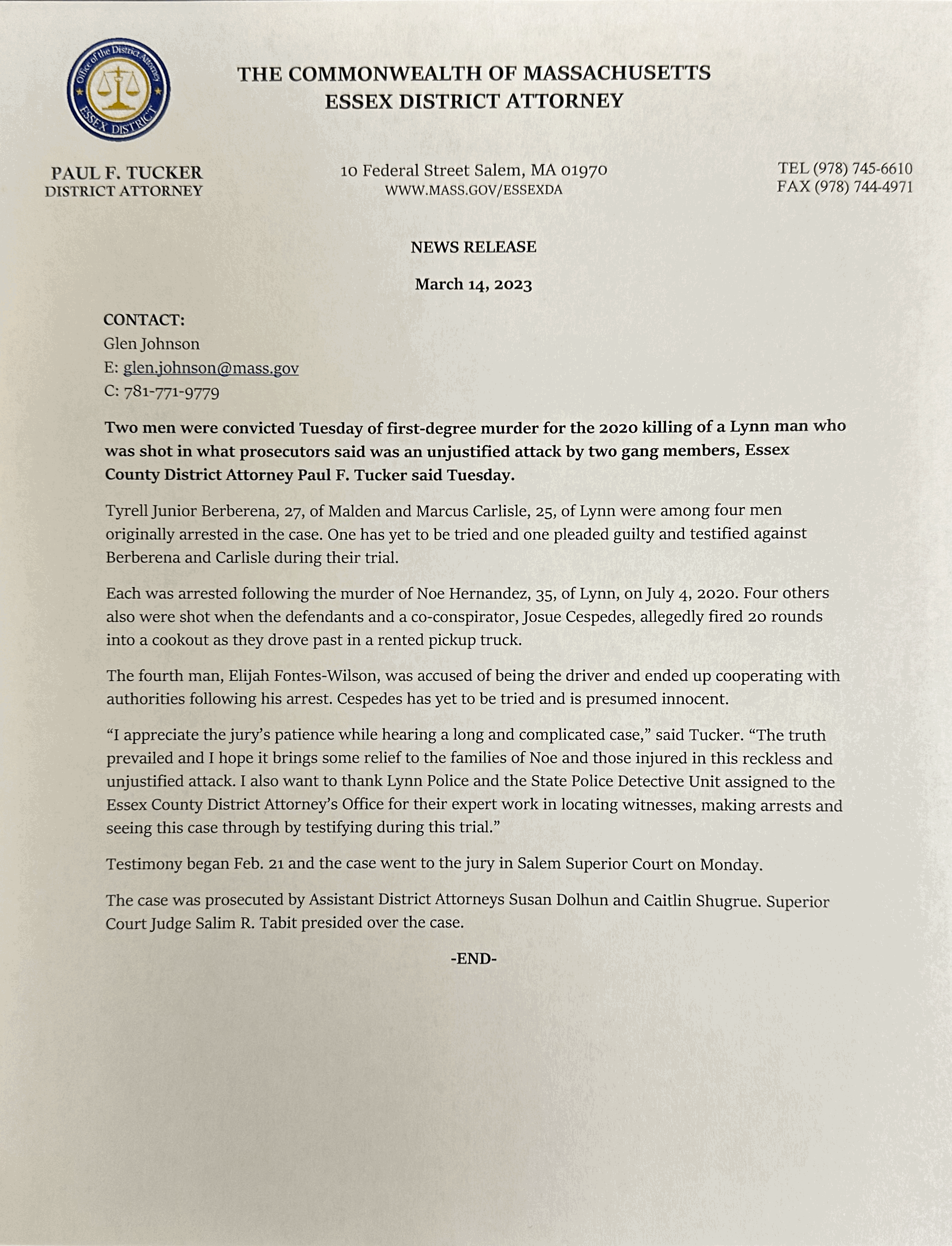 Tyrell Junior Berberena, 27, of Malden and Marcus Carlisle, 25, of Lynn were among four men originally arrested in the case.