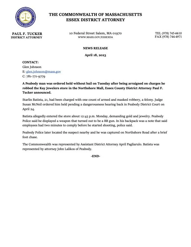 Starlin Batista, 21, is accused of robbing Kay Jewelers